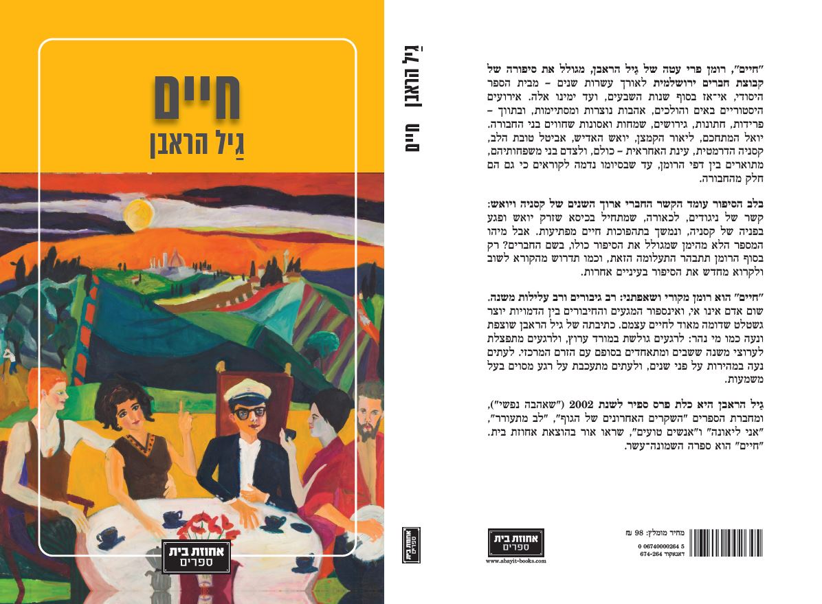 "חיים", רומן פרי עטה של גַיל הראבן, מגולל את סיפורה של קבוצת חברים ירושלמית לאורך עשרות שנים ' מבית הספר היסודי, אי-אז בסוף שנות השבעים, ועד ימינו אלה. אירועים היסטוריים באים והולכים, אהבות נוצרות ומסתיימות, ובתווך ' פרידות, חתונות, גירושים, שמחות ואסונות שחווים בני החבורה. יואל המתחכם, ליאור הקמצן, יואש האדיש, אביטל טובת הלב, קסניה הדרמטית, עינת האחראית ' כולם, ולצדם בני משפחותיהם, מתוארים בין דפי הרומן, עד שבסיומו נדמה לקוראים כי גם הם חלק מהחבורה.