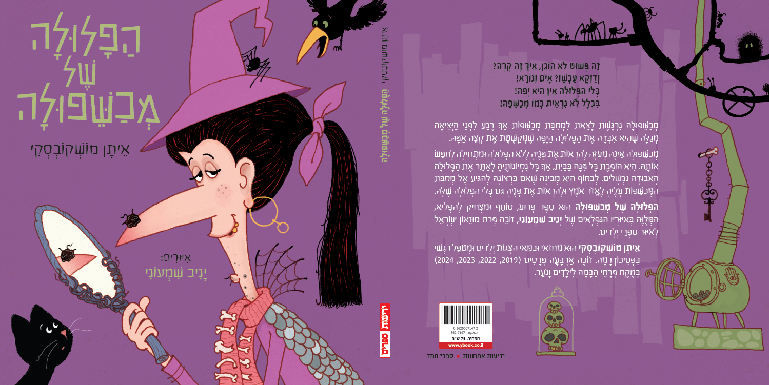 הפלולה של מכשפולה הוא ספר פרוע, סוחף ומצחיק להפליא, המלווה באיוריו הנפלאים של יניב שמעוני, זוכה פרס מוזיאון ישראל לאיור ספרי ילדים.