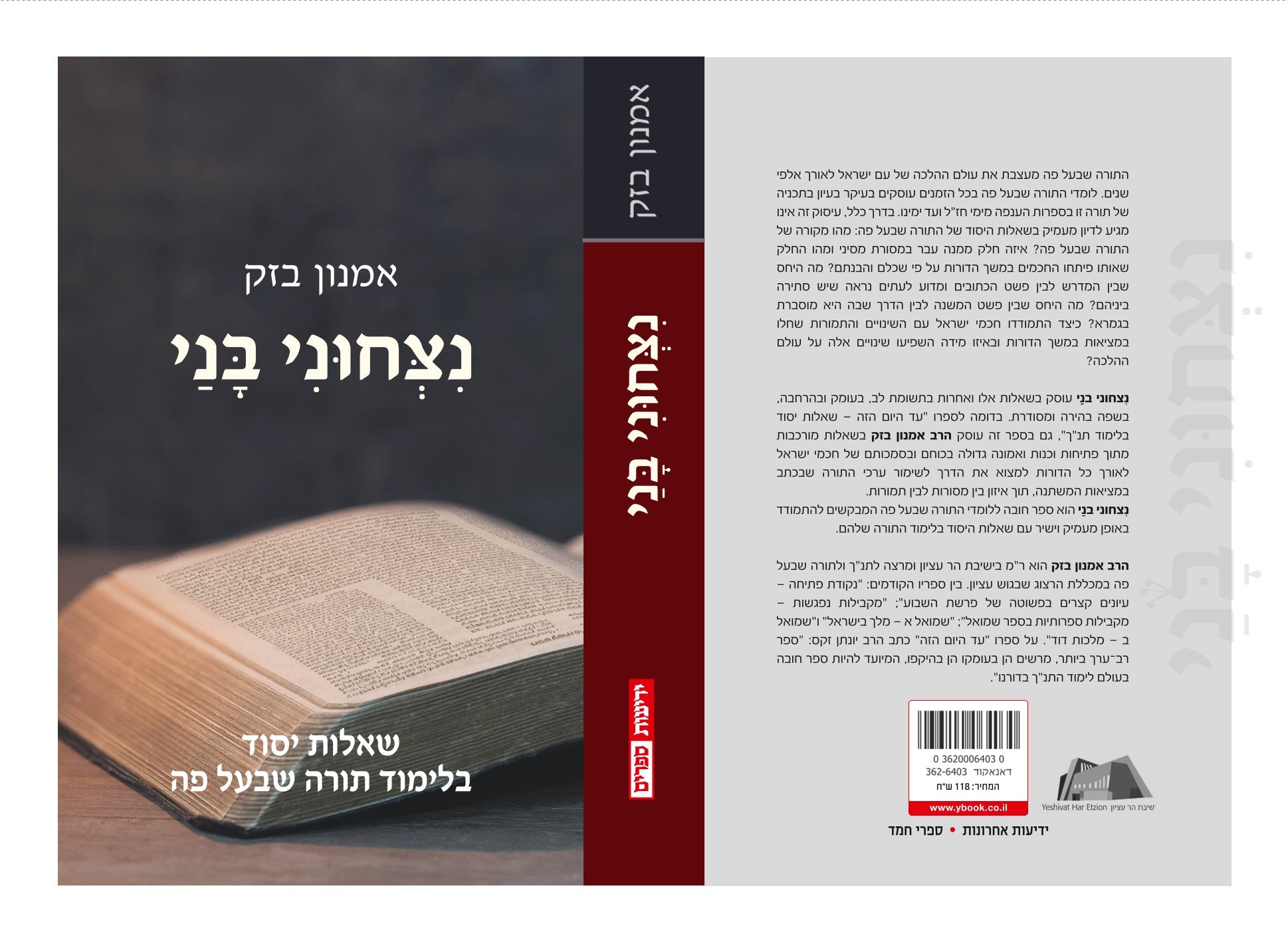 נִצחוני בנַי עוסק בשאלות אלו ואחרות בתשומת לב, בעומק ובהרחבה, בשפה בהירה ומסודרת. בדומה לספרו "עד היום הזה ' שאלות יסוד בלימוד תנ"ך", גם בספר זה עוסק הרב אמנון בזק בשאלות מורכבות מתוך פתיחות וכנות ואמונה גדולה בכוחם ובסמכותם של חכמי ישראל לאורך כל הדורות למצוא את הדרך לשימור ערכי התורה שבכתב במציאות המשתנה, תוך איזון בין מסורות לבין תמורות.