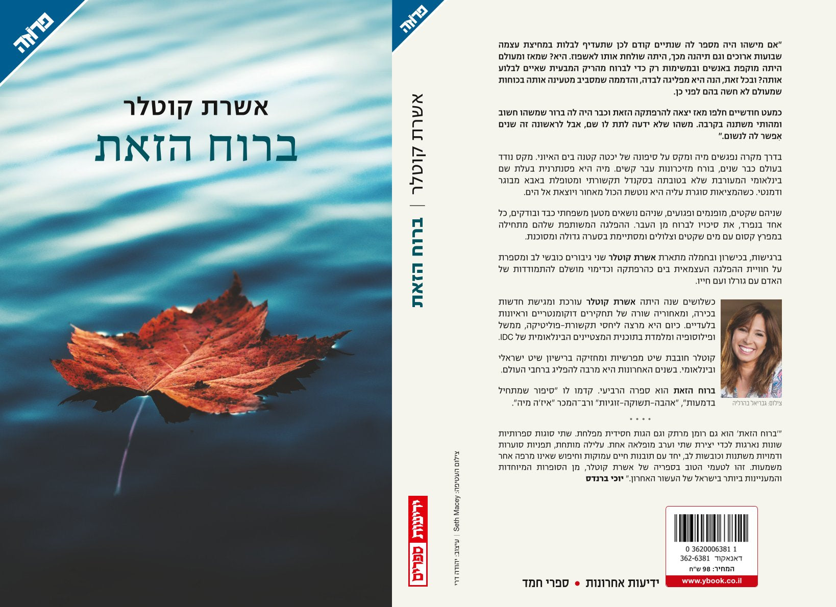 "'ברוח הזאת' הוא גם רומן מרתק וגם הגות חסידית מפלחת. שתי סוגות ספרותיות שונות נארגות לכדי יצירת שתי וערב מופלאה אחת. עלילה מותחת, תפניות סוערות ודמויות משתנות וכובשות לב, יחד עם תובנות חיים עמוקות וחיפוש שאינו מרפה אחר משמעות. זהו לטעמי הטוב בספריה של אשרת קוטלר, מן הסופרות המיוחדות והמעניינות ביותר בישראל של העשור האחרון." יוכי ברנדס