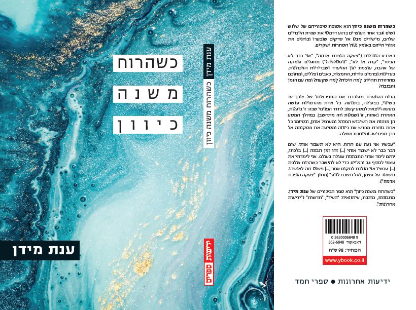 "כשהרוח משנה כיוון" הוא ספר הביכורים של ענת מידן. מתבוננת, כותבת, עיתונאית "העיר", "חדשות" ו"ידיעות אחרונות".