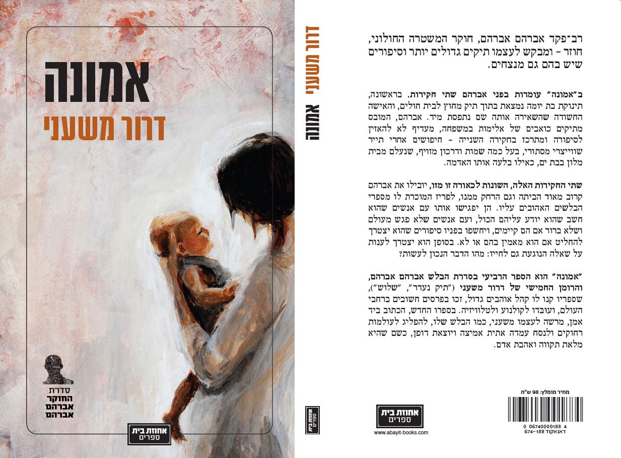 "אמונה" הוא הספר הרביעי בסדרת הבלש אברהם אברהם, והרומן החמישי של דרור משעני ("תיק נעדר", "שלוש"), שספריו קנו לו קהל אוהבים גדול, זכו בפרסים חשובים ברחבי העולם, ועוּבּדו לקולנוע ולטלוויזיה. בספרו החדש, הכתוב ביד אמן, מרשה לעצמו משעני, כמו הבלש שלו, להפליג לעולמות רחוקים ולנסח עמדה אתית אמיצה ויוצאת דופן, כשם שהיא מלאת תקווה ואהבת אדם.