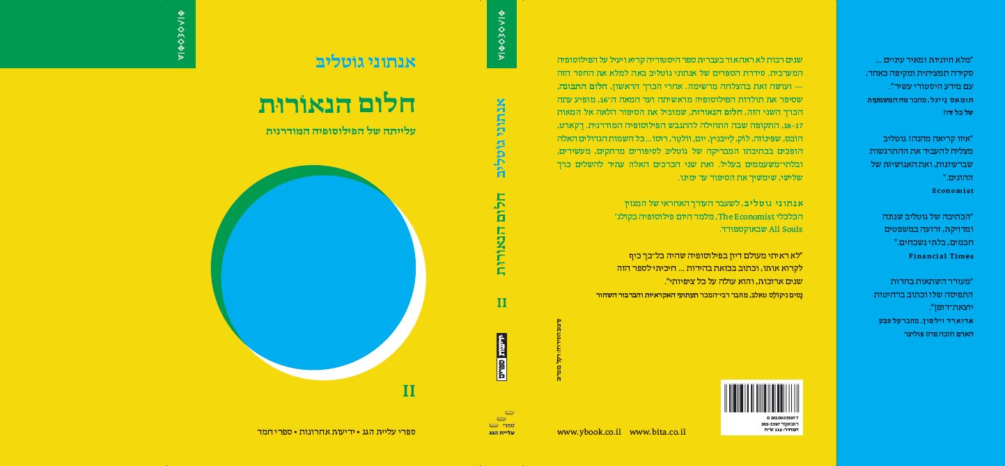 שנים רבות מאוד לא ראה אור בעברית ספר היסטוריה קריא ויעיל של הפילוסופיה המערבית. סדרת הספרים של אנתוני גוֹטליבּ באה למלא את החסר הזה ' ועושה זאת בהצלחה מרשימה. אחרי הכרך הראשון, חלום התבונה, שסיפר את תולדות הפילוסופיה מראשיתה ועד המאה ה-16, מופיע עתה הכרך השני הזה, חלום הנאוֹרוּת, שמוביל את הסיפור הלאה אל המאות 17'18, התקופה שבה התחילה להתגבש הפילוסופיה המודרנית. דֶקארט, הוֹבּס, שפּינוֹזה, לוֹק, לַייבּניץ, יוּם, ווֹלטֵר, רוּסוֹ... כל השמות הגדולים האלה הופכים בכתיבתו המבריקה של גוֹטליבּ לסיפורים מרתקים, מעשירים, ובלתי-משעממים בעליל. ואת שני הכרכים האלה עתיד להשלים כרך שלישי, שימשיך את הסיפור עד ימינו.