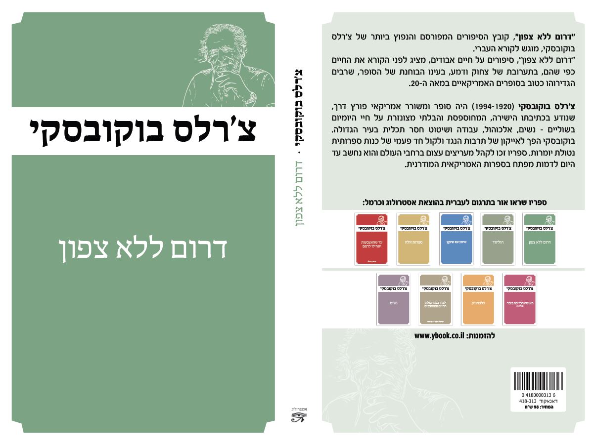 דרום ללא צפון מאת צ'רלס בוקובסקי סיפורים על חיים אבודים, כמו שהם, בצחוק ובדמע. אפילו קופסת סרדינים אפשר לפתוח בסטייל. הנרי צ'ארלס בוקובסקי 1920 - 1994 היה משורר, סופר ופובליציסט אמריקאי. בוקובסקי לא זכה להכרה רבה בארצות הברית ונחשב בה לסופר מחתרתי. באירופה, לעומת זאת, ובעיקר בגרמניה, נחשב לאחד מהסופרים האמריקאים המפורסמים ביותר. במדינות אירופיות רבות הפכו ספריו לרבי מכר (בגרמניה לבדה נמכרו כשני מיליון עותקים מספריו) ותורגמו לשפות רבות, ובהן עברית.