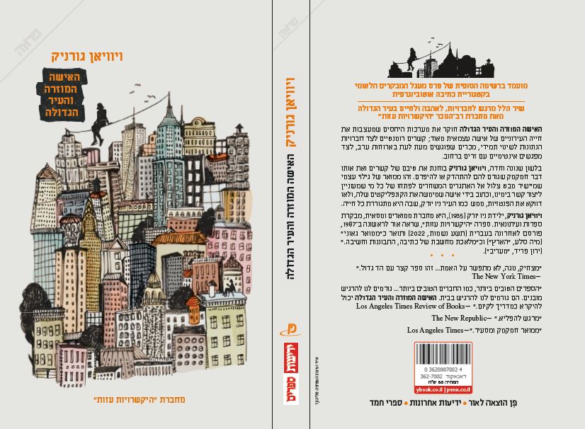 בלשון שנונה וחדה, ויוויאן גורניק בוחנת את טיבם של קשרים ואת אותו דבר חמקמק שגורם להם להתהדק או להיפרם. זהו ממואר של גילוי עצמי שמיישיר מבט צלול אל האתגרים המשחרים לפתחו של כל מי שמעוניין ליצור קשר בימינו, וכתוב בידי אישה שמימשה את הקונפליקטים שלה, ולאו דווקא את הפנטזיות, ממש כמו העיר ניו יורק, שבה היא מתגוררת כל חייה.