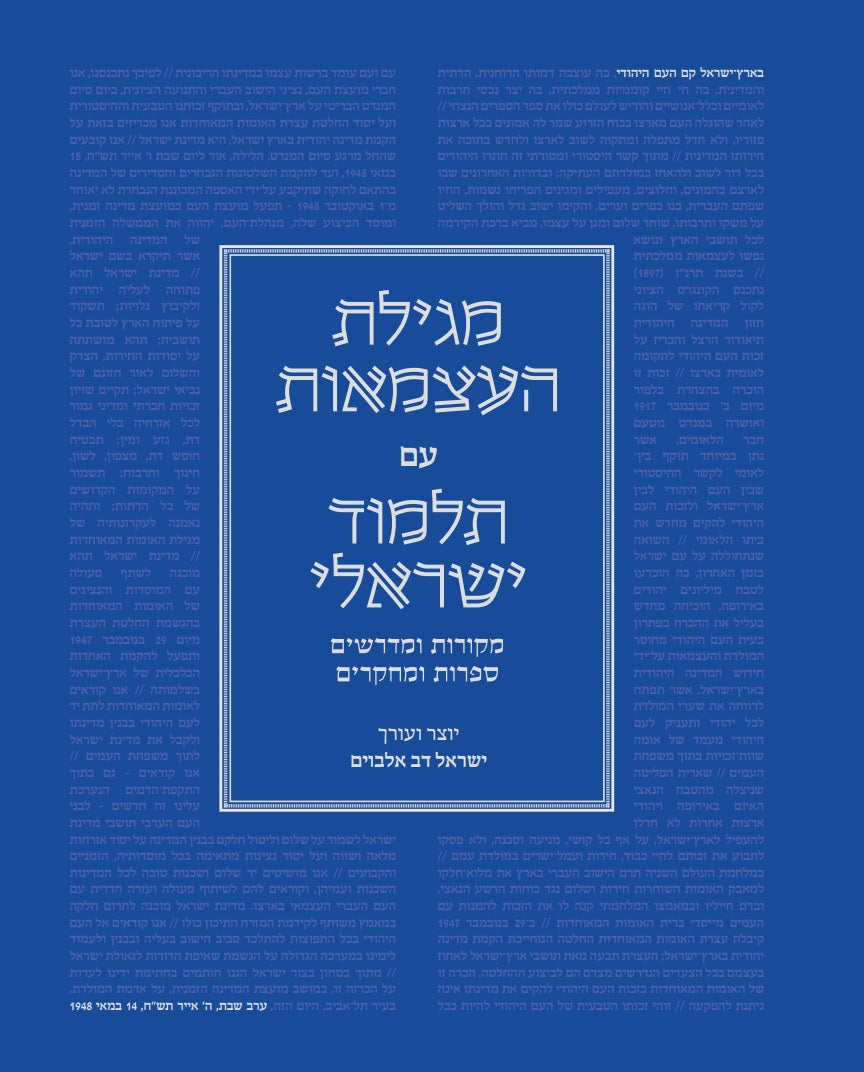 קריאה מחדש, פירוש, מחקר והגות במגילת העצמאות והתעמקות בתכניה יכולים לאפשר לחברה הישראלית, על כל גווניה ושיטותיה, ליצור לעצמה זהות חיה, ייעוד וחזון המתאימים לצרכיה המשתנים. מגילת העצמאות עם תלמוד ישראלי הוא הזמנה למסע אל עולם עמוק, עשיר ומרתק, המכיל את כל צופני הדי־אן־איי של מדינת ישראל.